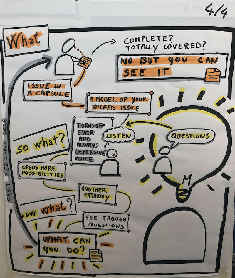 Recently I was on a reoccurring call with Human System Dynamics (HSD) associates and friends where a volunteer shares a wicked issue they have and then listen to questions without answering. The questions are open ended, not disguised advice, beyond the knowledge of the asker.